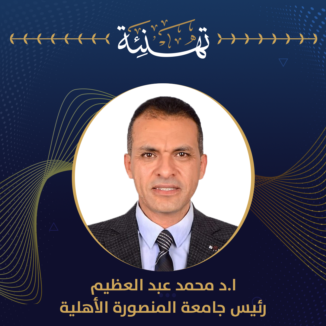 يتقدم السيد د/ ايمن جمعة مدير مركز التدريب الرقمي و السادة العاملين بالمركز بخالص التهنئة إلى الأستاذ الدكتور محمد عبدالعظيم نائب رئيس الجامعة و نائب رئيس مجلس إدارة مركز التدريب الرقمي والرئيس المفوض، بمناسبة صدور قرار فخامة رئيس الجمهورية بتعيين سيادته رئيسًا لـ جامعة المنصورة الأهلية. مع خالص الأمنيات لسيادته بدوام التوفيق والسداد، ومزيد من النجاح والتقدم في قيادة الجامعة واستكمال مسيرة التميز والريادة والعطاء